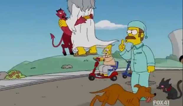 “A Bíblia é publicamente queimada e Deus e Satã são mostrados sob a